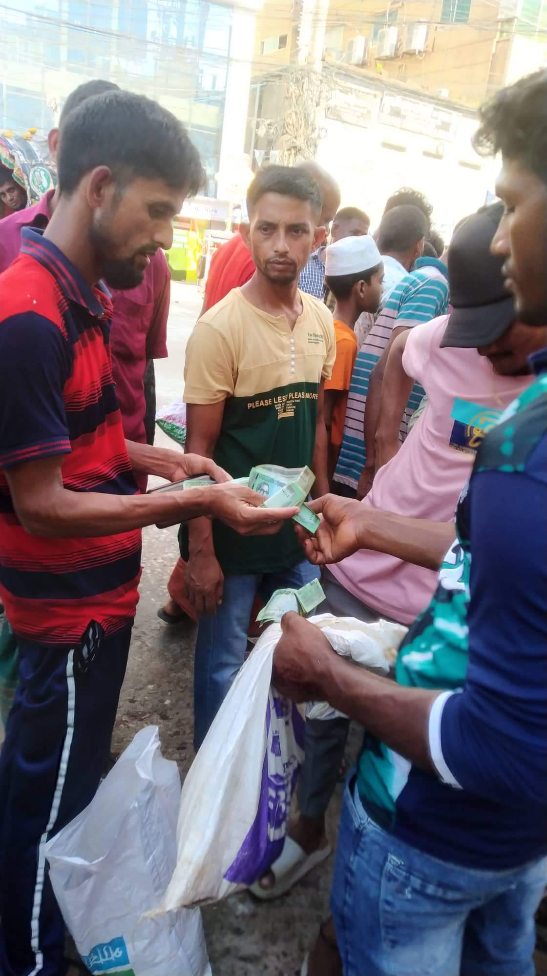 বস্তা বা ব্যাগ উঠিয়ে হাতে আনুমানিক ওজন মেপেই চলছে কেনা বেচা। ক্রেতাদের বেশির ভাগই হোটের ব্যবসায়ি কিংবা নিম্ন আয়ের মানুষ।
