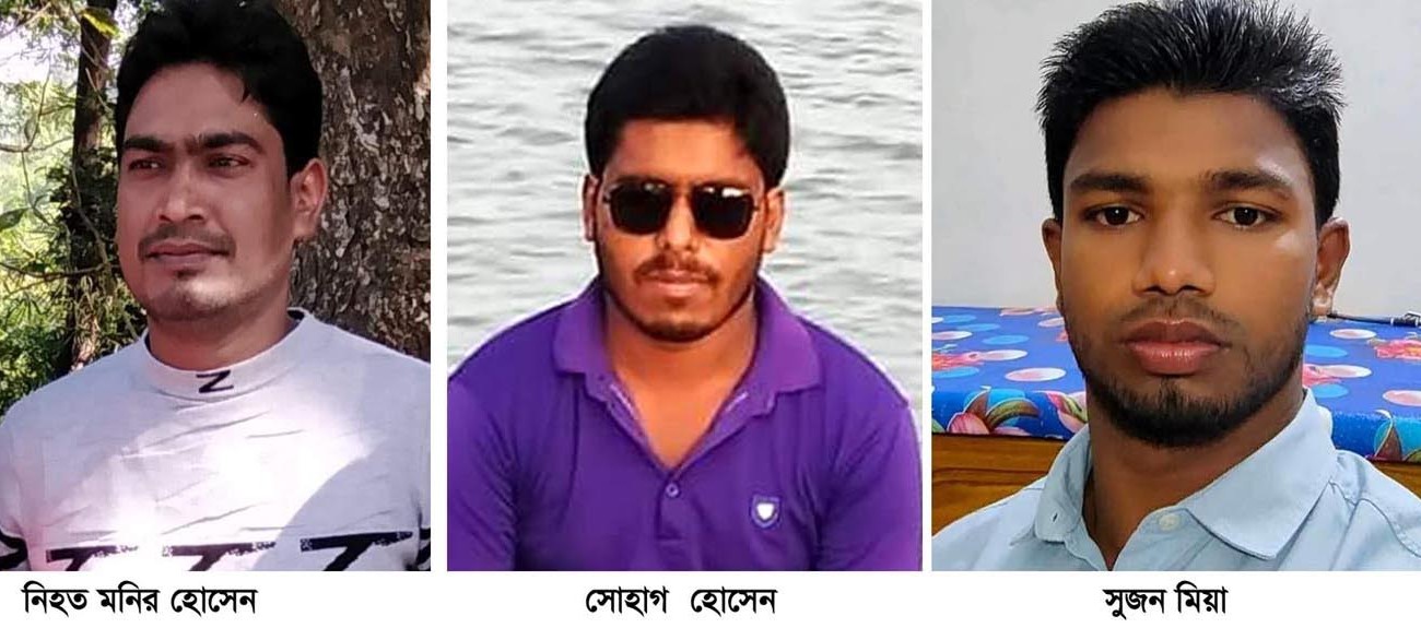 অপরদিকে, পাশ্ববর্তী বাড়ির তিন বন্ধুর মৃত্যুতে এলাকায় শোকের ছায়া নেমে এসেছে। চিৎকার করে বুক ফাঁটিয়ে কান্নায় ভেঙ্গে পড়ছে তাদের পরিবারের স্বজনরা। পাশাপাশি বাড়ির বাসিন্দা হওয়ায় তিন পরিবারের আর্তনাদে ভারী হয়ে উঠেছে গোটা এলাকা। সন্তান হারানোর বেদনায় বার বার মুর্ছা যাচ্ছে মা-বাবা। প্রতিবেশী ও আত্মীয়-স্বজনদের শান্তনাও যেন বাঁধ মানছে না। এক ছেলে ও এক মেয়ে সন্তানের পিতা মনির এর স্ত্রী যেন দিশেহারা। সন্তান সম্ভাবা সোহাগের স্ত্রী জ্ঞান শূন্য অবস্থায় লুটিয়েছে মাটিতে। দুই ছেলে ও এক কন্যা সন্তানের জনক মজনু মিয়া। ১৬ বছর বয়সী মেয়েকে হারিয়েছে চার বছর আগে। উপার্জনক্ষম বড় ছেলে সোহাগকে হারিয়ে বাকরূদ্ধ মজনু মিয়া ও তার স্ত্রী ফরিদা। সরেজমিনে ওই এলাকায় গিয়ে কারোর যেন চোখের পানি ধরে রাখার উপায় নেই। এমন হৃদয় বিদারক ঘটনায় স্তব্ধ ওই এলাকা। শুক্রবার সন্ধ্যায় এ রিপোর্ট লেখা পর্যন্ত সন্তানদের মরদেহ পৌঁছার অপেক্ষায় স্বজনরা।