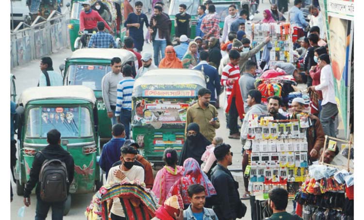চিত্রই যেন হারায় মানায় কোন লোকারণ্যকে। দুই পাশের ফুটপাত দখল হওয়ায়