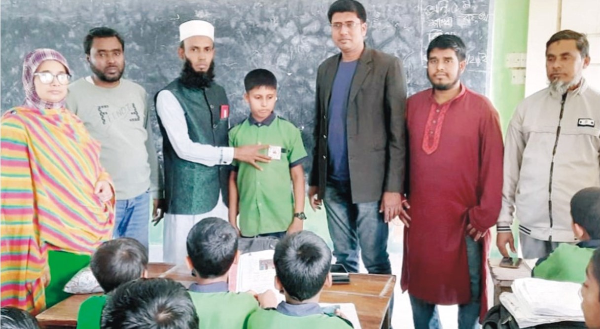 হাতে ব্যাজ তুলে দেন বিদ্যালয় পরিচালনা পর্ষদ সদস্যবৃন্দ। এসময় বিদ্যালয়ের