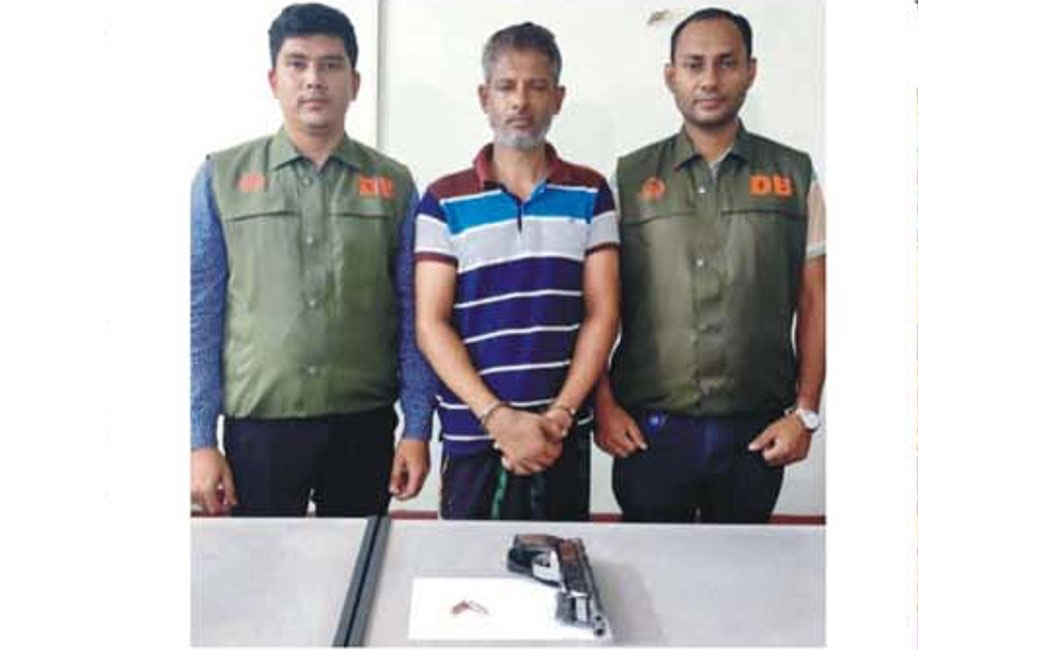 একটি বিশেষায়িত দোনালা পিস্তলসহ দুই রাউন্ড গুলি উদ্ধার করা হয়েছে। এসময়