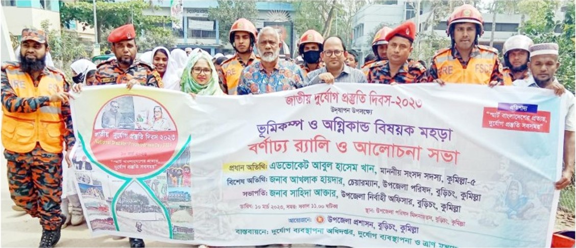 উপলক্ষ্যে ভূমি কম্পন ও অগ্নিকাণ্ড বিষয়ক মহড়া, বর্ণাঢ্য র্যালি আলোচনা