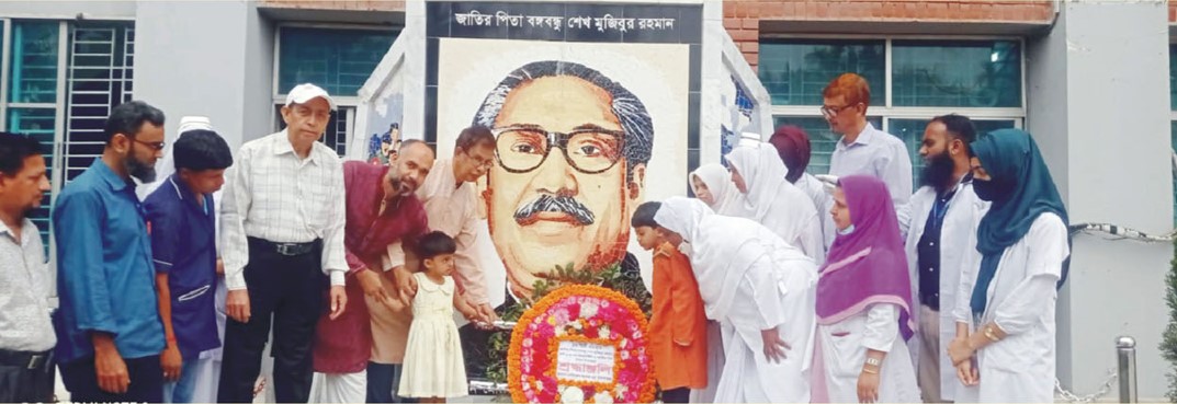 জাতির পিতা বঙ্গবন্ধু’র ম্যুরালে পুস্পস্তবক অর্পণের মাধ্যমে শ্রদ্ধা