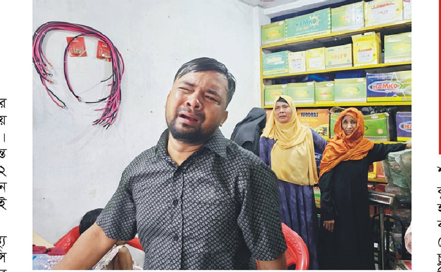 পড়ছেন। পাশে তাঁর ছোট মেয়ে ও স্ত্রী হাউ মাউ করে কাঁদছেন। এসময় তাঁর দোকান ও
