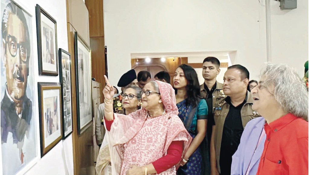বঙ্গমাতা শেখ ফজিলাতুননেছা মিলনায়তনে চিত্রশিল্পী শাহাবুদ্দিন আহমেদের আঁকা