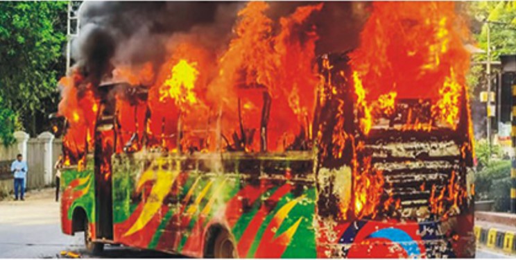 যানবাহনে আগুন দেওয়া হয়েছে ২৫ জেলায়; বাকি ৩৯ জেলায় আগুন নিয়ে কোনো