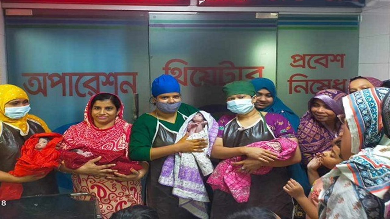 পরে পটুয়াখালী মেডিকেল কলেজ হাসপাতালের গাইনি বিভাগের সহকারী অধ্যাপক, বিশেষজ্ঞ ও সার্জন জাকিয়া সুলতানার তত্ত্বাবধায়নে রাত সোয়া ৯টা থেকে ১১টা পর্যন্ত অস্ত্রপাচারের পর একে একে চার শিশুর জন্ম হয়।
