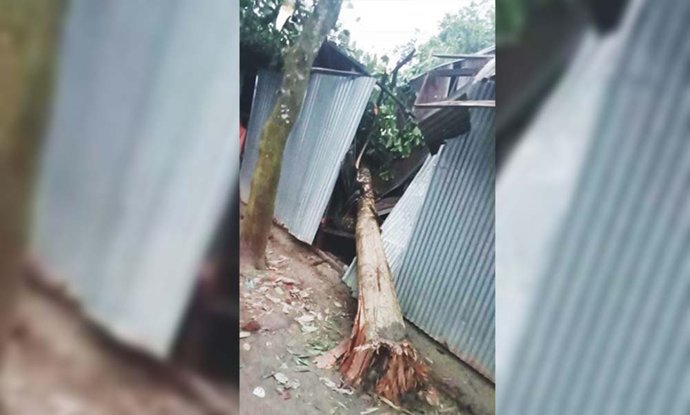 সেখানেই টিনের তৈরি ঘরের উপর গাছ ভেঙ্গে পড়লে রাতেই ঘটনাস্থলে মৃত্যু হয়