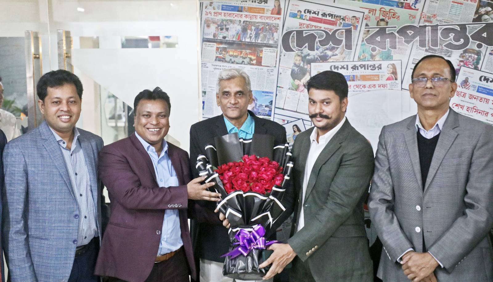 এ সময় তাকে ফুল দিয়ে বরণ করেন দেশ রূপান্তর পত্রিকার প্রকাশক ও রূপায়ণ গ্রুপের কো-চেয়ারম্যান মাহির আলী খাঁন রাতুল, রূপায়ণ গ্রুপের উপদেষ্টা ব্রিগেডিয়ার জেনারেল আবুল কালাম আজাদ (অব.), এ এস এম সাইখুল ইসলাম, প্রধান মানব সম্পদ কর্মকর্তা মো.মোস্তফা কামাল, সদ্য বিদায়ী সম্পাদক মোস্তফা মামুন, রূপায়ণ গ্রুপের হেড অব মিডিয়া হাবিবুর রহমান পলাশসহ অন্যান্য দেশ রূপান্তরের বিভিন্ন বিভাগের সাংবাদিক ও কর্মীরা।