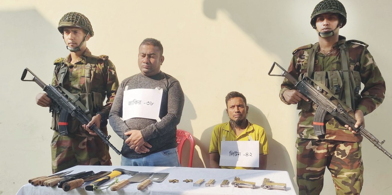 দুটি অস্ত্র ও দেশীয় বিভিন্ন অস্ত্রসহ দুই সন্ত্রাসীকে আটক করেছে