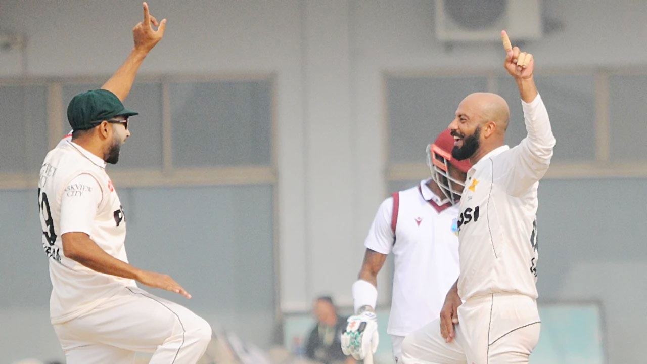 স্পিনার যেন হুল ফোটালেন ক্যারিবীয় ব্যাটিং অর্ডারে। সাজিদ খানের ৫ উইকেটের