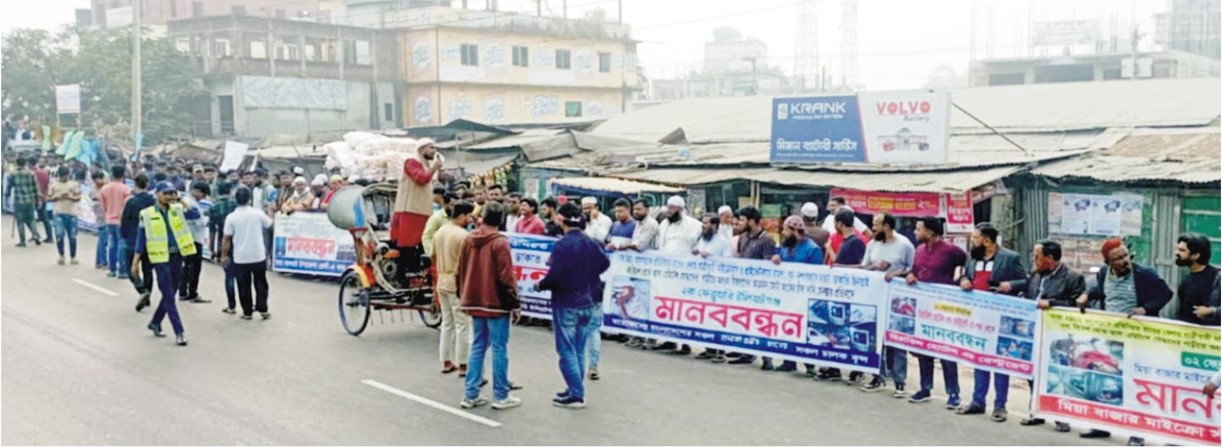 সীমান্তবর্তী শব্দলপুর-ইলিয়টগঞ্জ এলাকায় ওই মানববন্ধন করে তারা। পরে