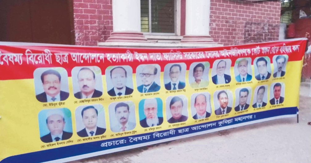 আইনজীবীর ছবি সম্মিলিত ব্যানার টাঙিয়ে দেওয়া হয়।
