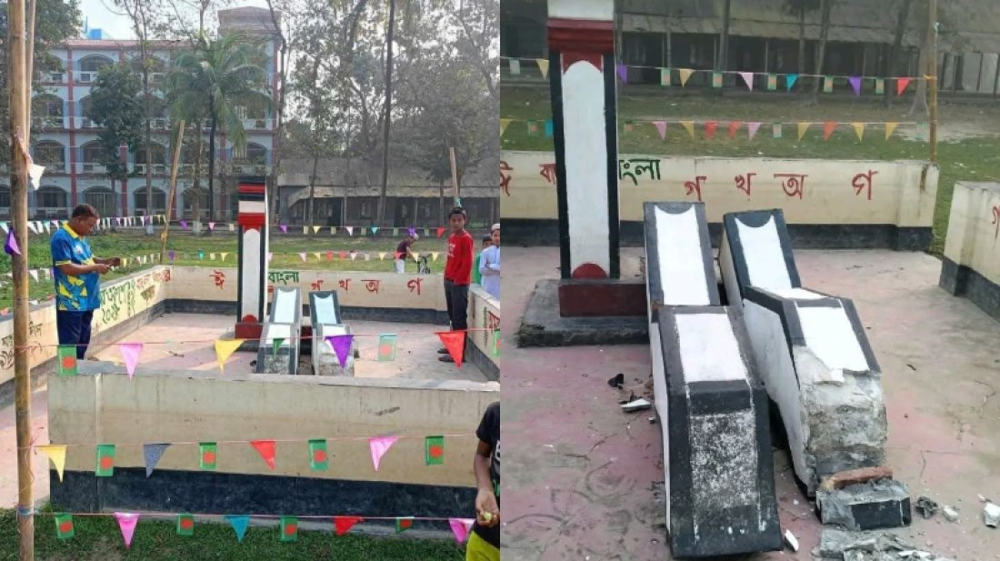 কলেজ সূত্রে জানা গেছে, আন্তর্জাতিক মাতৃভাষা দিবস উপলক্ষে বৃহস্পতিবার রাত ১২টা ১ মিনিটে প্রথমে কলেজের শিক্ষকরা ও পরে স্থানীয় বিএনপির নেতাকর্মীরা কলেজ চত্বরের শহীদ মিনারে শ্রদ্ধা জানান। পরে সবাই রাত সাড়ে ১২টার দিকে ক্যাম্পাস ত্যাগ করেন। রাত আনুমানিক ২টার দিকে বিকট শব্দ হয়। কলেজের নৈশপ্রহরী শহীদ মিনারের কাছে গিয়ে দেখেন শহীদ মিনারের তিনটি স্তম্ভের মধ্যে দুটি ভেঙে ফেলেছে দুর্বৃত্তরা।