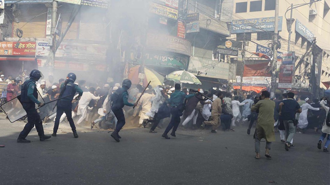 রাজধানীর বায়তুল মোকাররম এলাকায় শুক্রবার (৭ মার্চ) জুমার নামাজের পর নিষিদ্ধ সংগঠন হিযবুত তাহরীরের মিছিল বের করেছে। ওই মিছিলে পুলিশের সঙ্গে সংঘর্ষের ঘটনা ঘটেছে। ‘মার্চ ফর খিলাফা’ কর্মসূচির অংশ হিসেবে কয়েকশ’ হিযবুত তাহরীরের সমর্থক পল্টনমুখী মিছিল বের করলে পুলিশ তাদের বাধা দেয়।