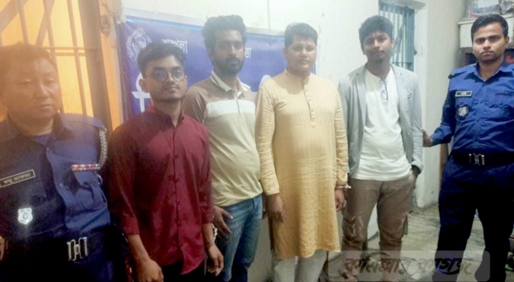 গ্রেপ্তারকৃতরা হলো, কুমিল্লার দেবিদ্বারের মাহবুবুর রহমানের ছেলে তোফায়েল আহমেদ ও গুনাইঘর দক্ষিণ ইউনিয়নের জোরপুল এলাকার মোস্তাফিজুর রহমানের ছেলে মেহেদী হাসান রিয়াদ, খাগড়াছড়ির মানিকছড়ির আব্দুল মতিনের ছেলে মোক্তাদির হোসেন ও গুইমারার মো. জয়নাল আবেদীনের ছেলে আল আমীন।