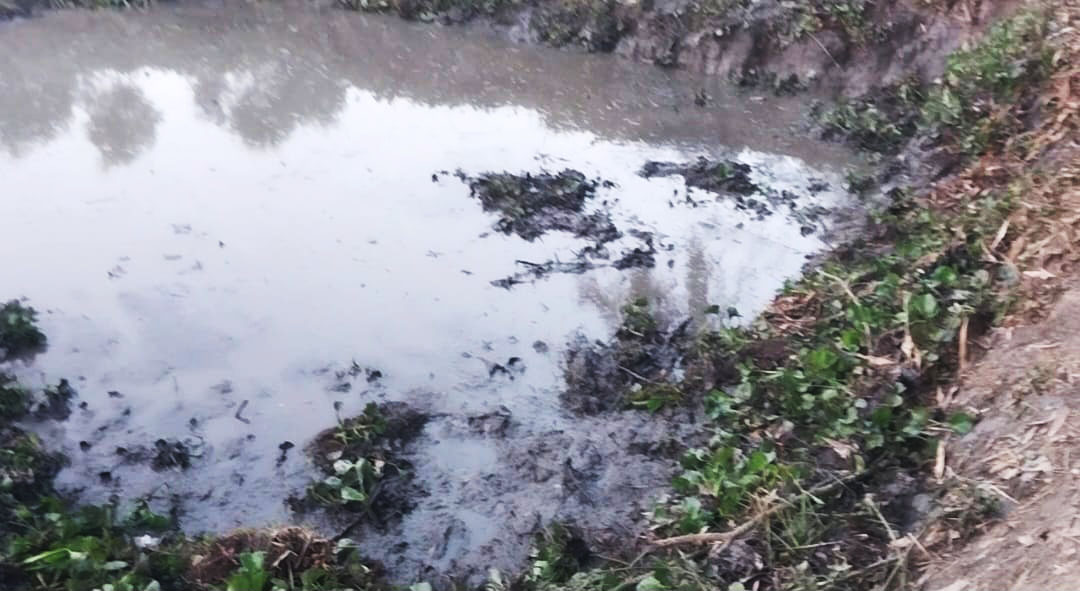 দিঘিতে কচুরি ফেনা ভরপুর ছিল। আর এখন দিঘির পূর্ব-দক্ষিণ অংশের খাদে