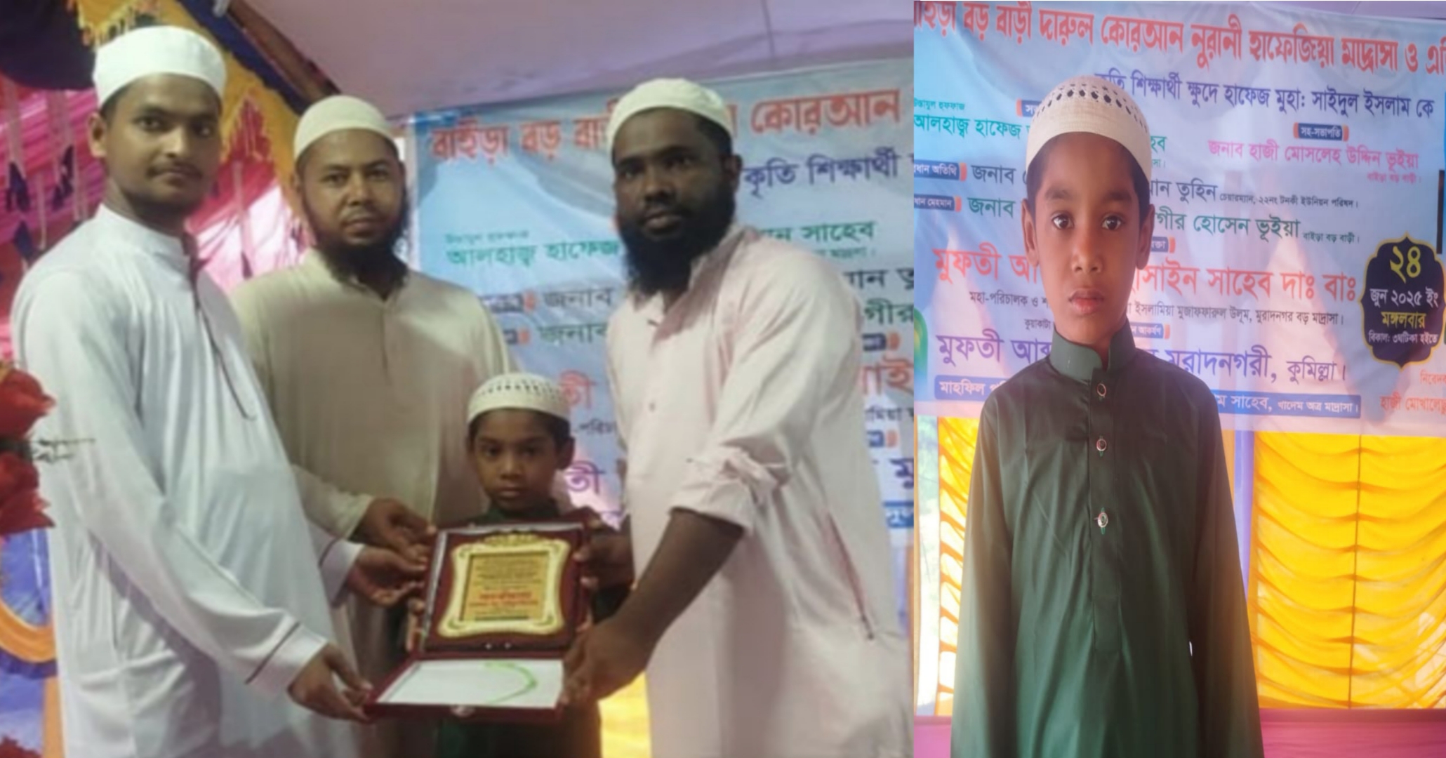 অবিশ্বাস্য হলেও সত্য! মাত্র ৫ মাস ১৮ দিনের মাথায় সম্পূর্ণ কুরআন শরিফ হিফজ (মুখস্থ) করে এক নতুন ইতিহাস গড়লো ৮ বছর বয়সী শিশু সাইদুল ইসলাম। কুমিল্লার মুরাদনগর উপজেলার বাইড়া বড় বাড়ী দারুল কুরআন নুরানিয়া হাফেজিয়া মাদ্রাসা ও এতিমখানার এই ক্ষুদে শিক্ষার্থী তার অদম্য মেধা ও ঐকান্তিক প্রচেষ্টার মাধ্যমে যেন 'ঐশ্বরিক' গতিতেই পবিত্র কুরআনকে আত্মস্থ করেছে।