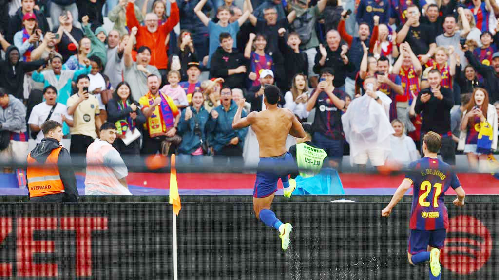 পেছনে তার সতীর্থরা। গোটা বার্সেলোনা শিবিরে সে কী উল্লাস! জয়ে ফেরার
