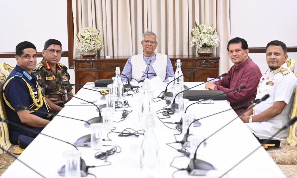 বৈঠকে জাতীয় নিরাপত্তার পাশাপাশি দেশের আইন-শৃঙ্খলা রক্ষায় সামরিক বাহিনীর সদস্যদের কঠোর পরিশ্রমের জন্য সাধুবাদ জানান প্রধান উপদেষ্টা।