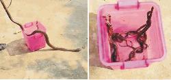 একটি বাড়ির সীমানা প্রাচীরের মাটি খুঁড়ে একটি গোখরা সাপসহ মোট ১৭টি বাচ্চা