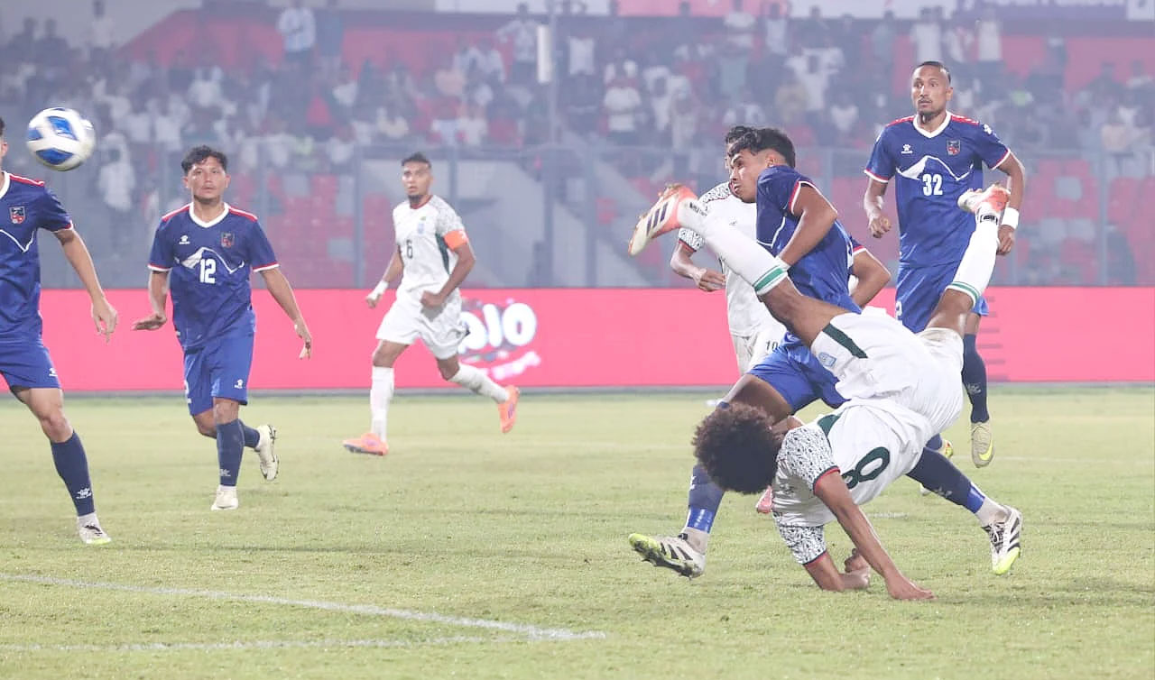 নেপাল গোল করে সমতা আনে। এতে আবারো ইনজুরি টাইমের গোলে জয়ের স্বপ্নভঙ্গ হয়