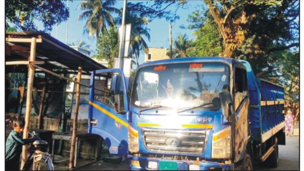থানার ঠাকুরমারা গ্রামের মোঃ সেলিমের চালিত ট্রাকে(ঢাকামেট্রো-ট-২০-৫১৯৮)