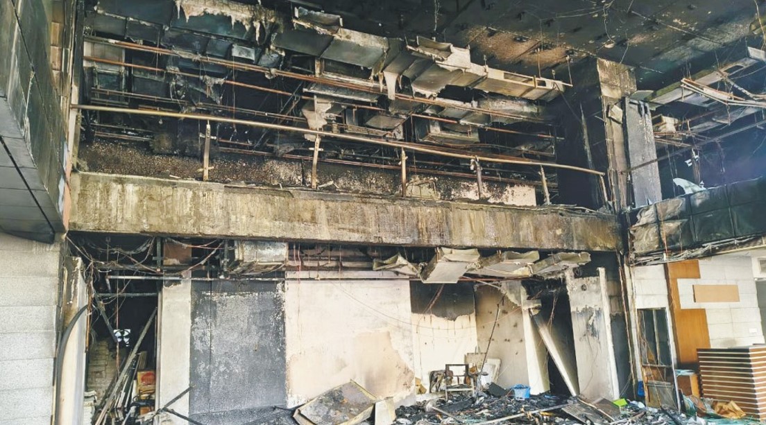 ভবন পুড়ে যায় এবং তাতে সংরক্ষিত সম্পদ ও মূল্যবান নথিপত্র ভস্মীভূত হয়।