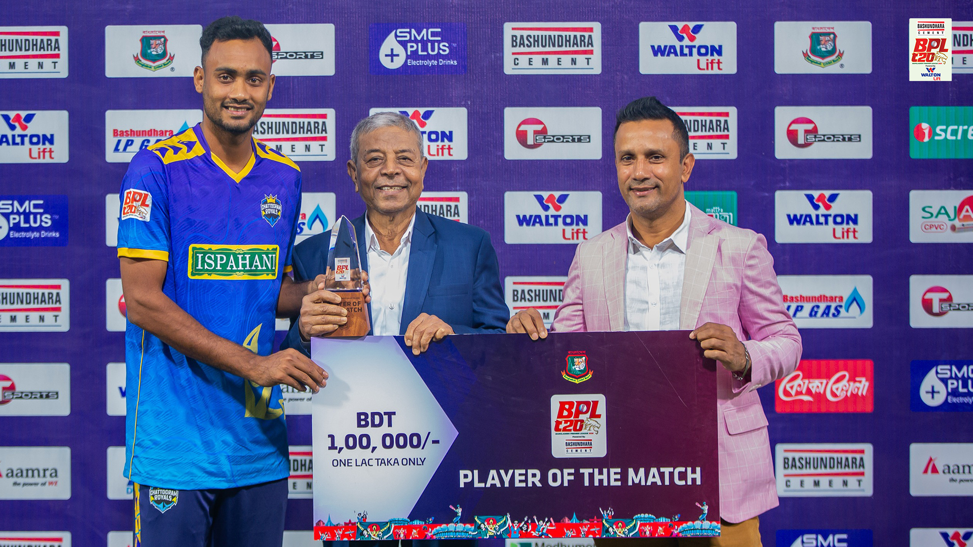 হোসেন ও ইহসানউল্লাহকে আউট করে নিজের পাঁচ উইকেট পান তিনি।