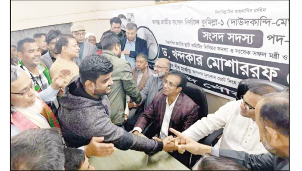 আসনে বিএনপির মনোনীত প্রার্থী ড. খন্দকার মোশাররফ হোসেনের পক্ষে আসন্ন