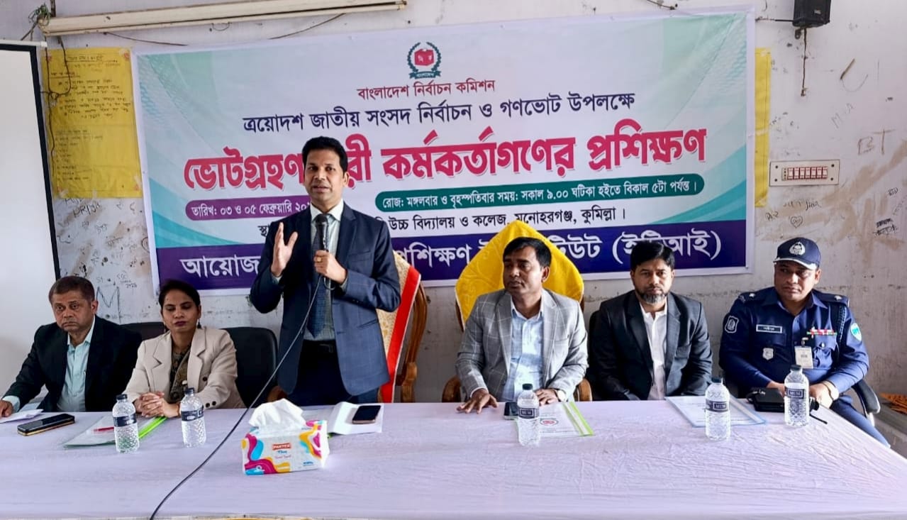 মোঃ হুমায়ুন কবির মানিক ।। আগামী ১২ফেব্রুয়ারী অনুষ্ঠিত ত্রয়োদশ জাতীয় সংসদ নির্বাচনের ভোট ও গণভোট সুন্দর ও সুশৃঙ্খল ভাবে গ্রহণ করার লক্ষ্যে কুমিল্লার মনোহরগঞ্জে প্রিসাইডিং,সহকারী প্রিসাইডিং ও পুলিং অফিসারদের দিনব্যাপী প্রশিক্ষন কর্মশালা অনুষ্ঠিত হয়। মঙ্গলবার (৩ফেব্রুয়ারী) মনোহরগঞ্জ সরকারি উচ্চ বিদ্যালয় ও কলেজে অনুষ্ঠিত প্রশিক্ষন কর্মশালায় প্রধান অতিথি ছিলেন কুমিল্লা জেলা প্রশাসক ও জেলা রিটার্নিং অফিসার মুহা: রেজা হাসান।